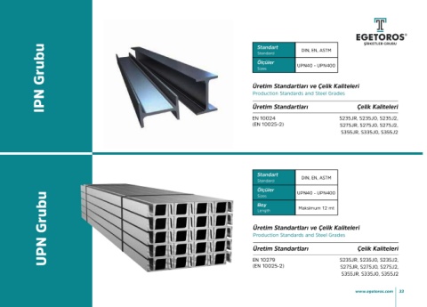 IPN Grubu Üretim Standartları ve Çelik Kaliteleri