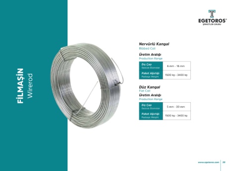 T DEMİRİ Rebar 20 mm 0,888 29,592 FİLMAŞİN Wirerod Düz Kangal 1500 kg - 3400 kg