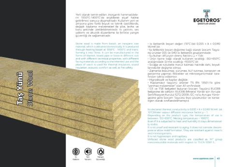 bir değişme olmaz. Stone wool is made from basalt, an inorganic raw • Isı iletkenlik beyan değeri (10°C’de) 0,035 ≤ λ ≤ 0,040