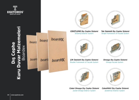 Dış Cephe Kuru Duvar Malzemeleri Boardex Double Framework of Facade System Omega Dış Cephe Sistemi Aksesuarlar Accessory BoardeX CL 38 BoardeX CT BoardeX DKC