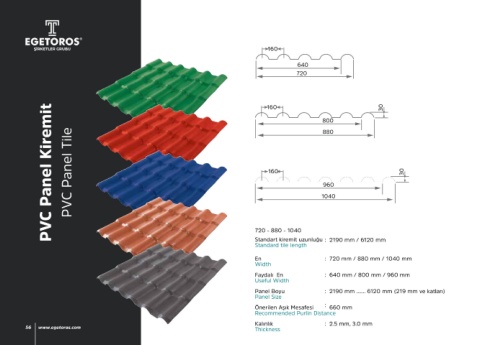 Standart kiremit uzunluğu : 2190 mm / 6120 mm